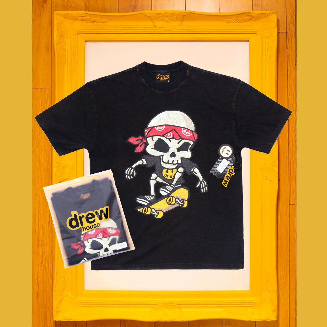 Mens T Shirt Drew House Smiley Face Pirate Hearty Vintage Hip Hop Retro High Street Short